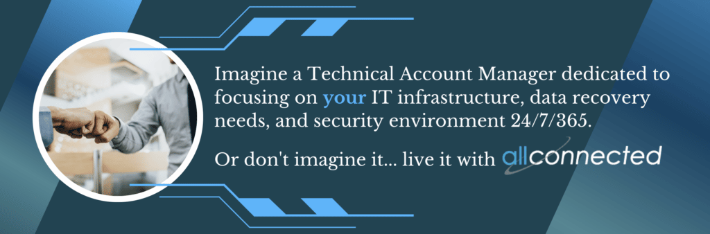 Interested in working with a team of IT experts? Contact AllConnected today. We have a supportConnect offering that can extend your existing IT team and fill gaps needed to secure and maintain your network, data centers, and more. This co-managed service helps reduce risk, increase availability, and boost your 24×7 support capabilities. We look forward to seeing how we can customize the right technology solutions for your business – and we’re excited to help your organization level up.