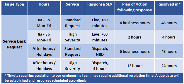 AllConnected schedules maintenance windows from 12am to 5am as needed with prior approval of the client. Standard business hours are 8AM to 5PM PDT Monday through Friday, except Holidays.